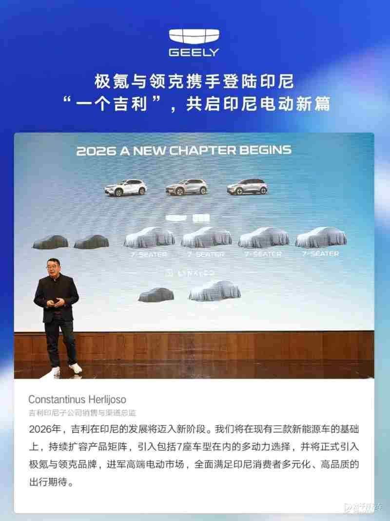 【太平洋汽车 新车频道】日前,Geely EX2(吉利星愿)在印尼正式上市,自去年11月开启预售以来,吉利EX2迅速赢得市场青睐。截至2026年1月下旬正式上市时,订单量已突破1500台。