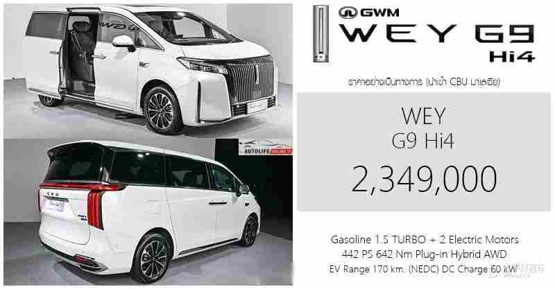 【太平洋汽车 新车频道】长城汽车(GWM)马来西亚公司于1月29日正式发布WEY G9 Hi4 PHEV豪华插电式混合动力MPV,新车作为首款在马来西亚本地组装的高端中国新能源MPV,售价定为26.98万林吉特(约合人民币41.3万元)。